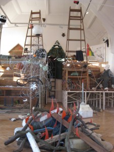 Taking a break from her hallmark candy-coloured sculptures, Karla Black has responded to a former warehouse at Fruitmarket with an installation comprising a ton or so of black soil. The light is low, here, in the gallery’s new space. But the minimal illumination is amplified by the introduction of gold and copper leaf, a multitude …
