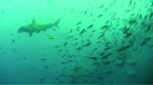 My response is helpless excitement. I lie on my back on the shark platform and look up at the murky green light. You can well imagine the hammerheads are up there.