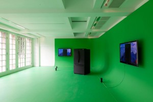 The fridge onscreen soon attains more presence than the fridge in the room. After 20 minutes, the real thing starts looking very finite against the gallery’s green screen infinity cove.