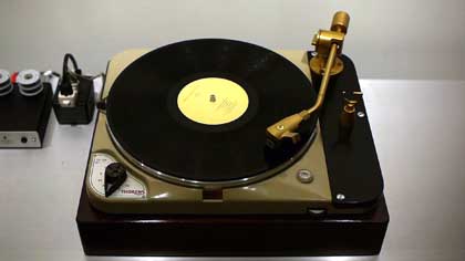Another piece, Soundtrack for an Exhibition, is both a video installation and an LP. A darkened enclosure has been constructed where you can listen to the soundtrack and watch it spin on a turntable at the same time. Stacks of the eponymous record propped against the wall appear to offer the chance to extend the exhibition into your home.