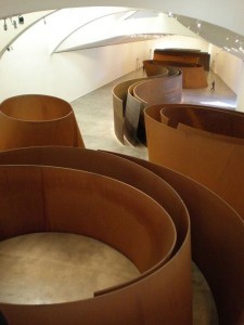 I came to understood The Matter of Time as exactly that, before I learned that this was the installation’s title. It was vertiginous. It was out-of-time, out-of-space, and therefore was a visitor from the fourth dimension. As such, it could only be understood by humans with our senses and ability to imagine the extra-sensory. The feel of the steel, the shape, the change in the ambient sound levels as one moved through the installation provided a few clues. No clear frames-of-reference, even from above, put one into a reverie. Disquieting to some, a fascination for others. No one was unaffected. Richard Serra’s brilliant work, contained within a marvelous gallery in Bilbao, taught me how to appreciate apprehend and understand Modern Art. I looked at Mark Rothko differently thereafter. I saw that his paintings at the Tate Modern in London were painted from six different directions simultaneously and they would snap into focus with that realization. It was humbling, but I credit Richard Serra with seeing beyond (as if hearing with one’s eyes and seeing with one’s ears). It was revelatory.