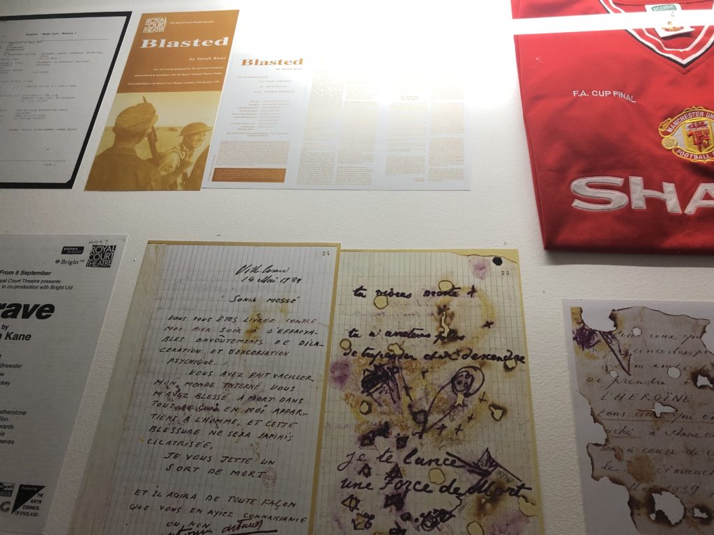 In the case of playwright Sarah Kane, she evoked a myth of gods fighting for possession of the sun, embodied here, on a third monitor screen, in an archived FA cup football game.