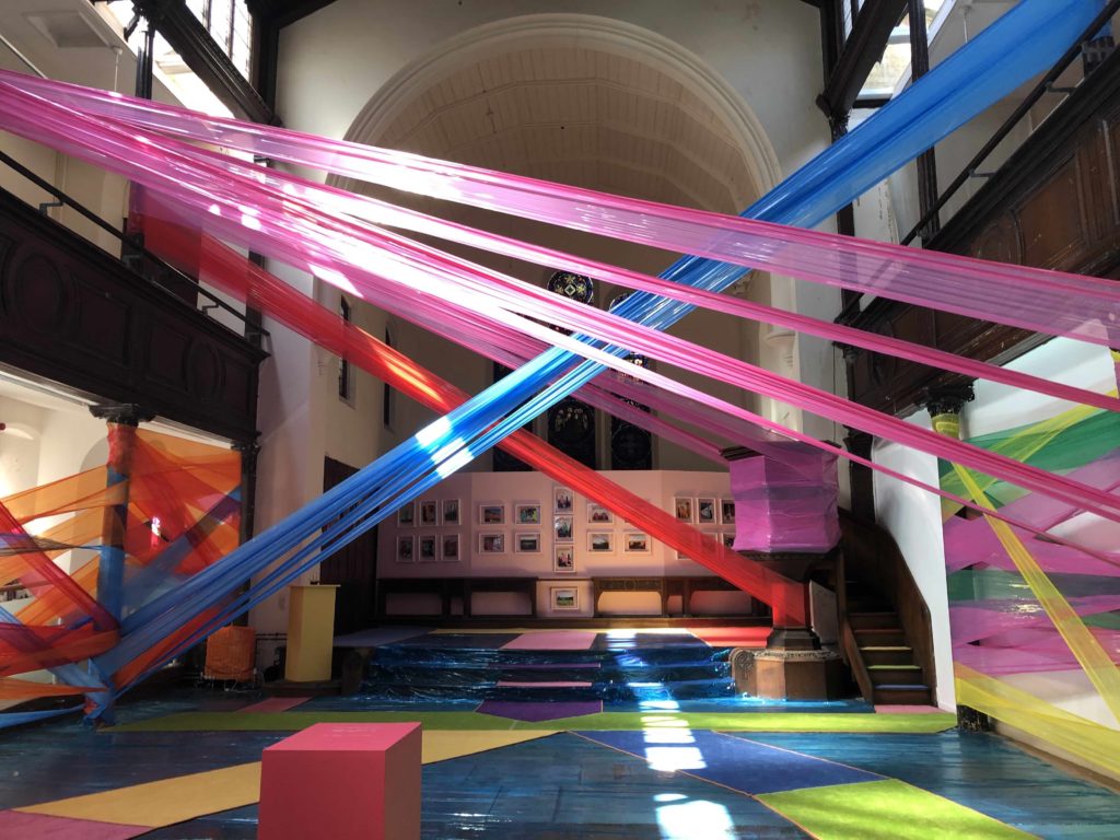 By this wondrous act, artists Walter and Zoniel have brought Moulescoombe and adjacent neighbourhood Bevendean into dialogue with city centre gallery Fabrica; in this central hub, the murals now relate to an immersive installation, all bright carpets and stretched plastic tape, which echo the loud colours and geometric forms deployed around the two estates on the edge of town. It was hoped that many Brighton residents, especially those who are often excluded from contemporary art spaces, might come and explore this show. But a global pandemic has meant that the gallery is closed to the general public.